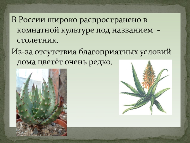 Слайд 6В России широко распространено в комнатной культуре под названием - столетник.