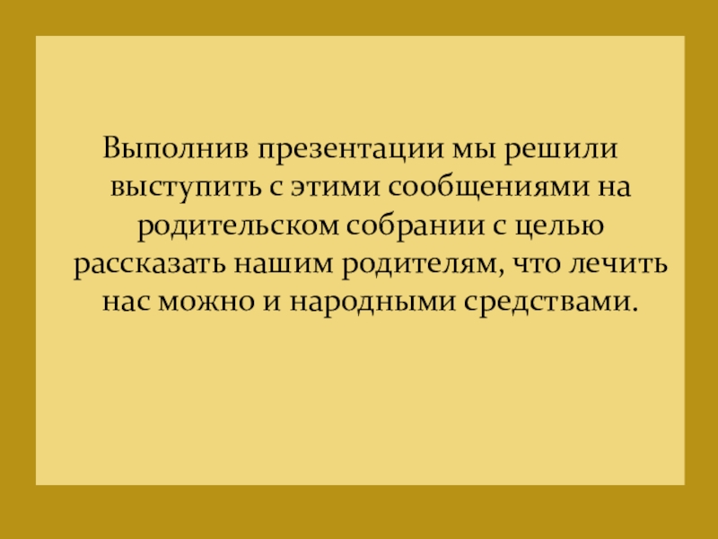 Выполнив презентации мы решили выступить с этими сообщениями на родительском собрании