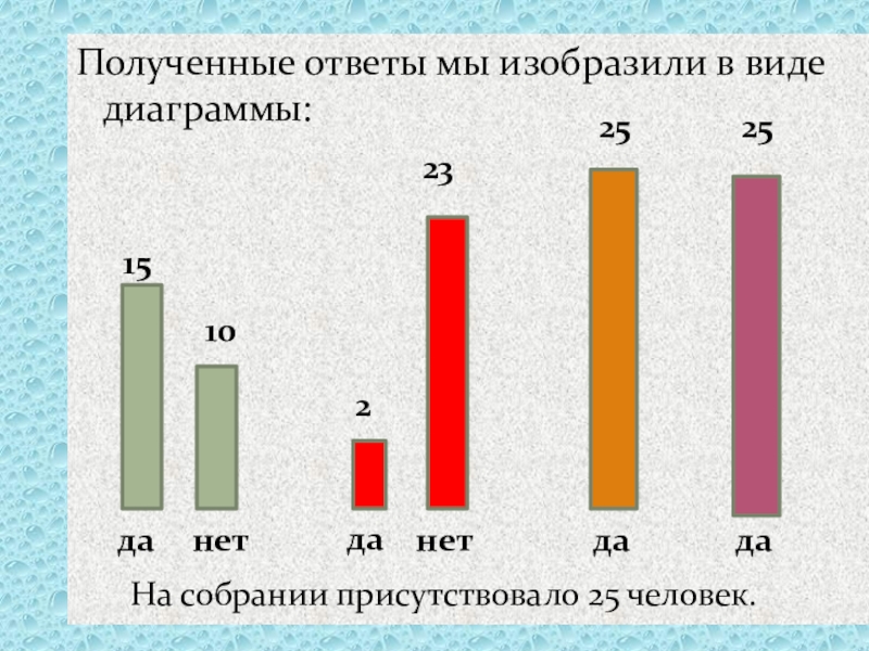 Слайд 23Полученные ответы мы изобразили в виде диаграммы: