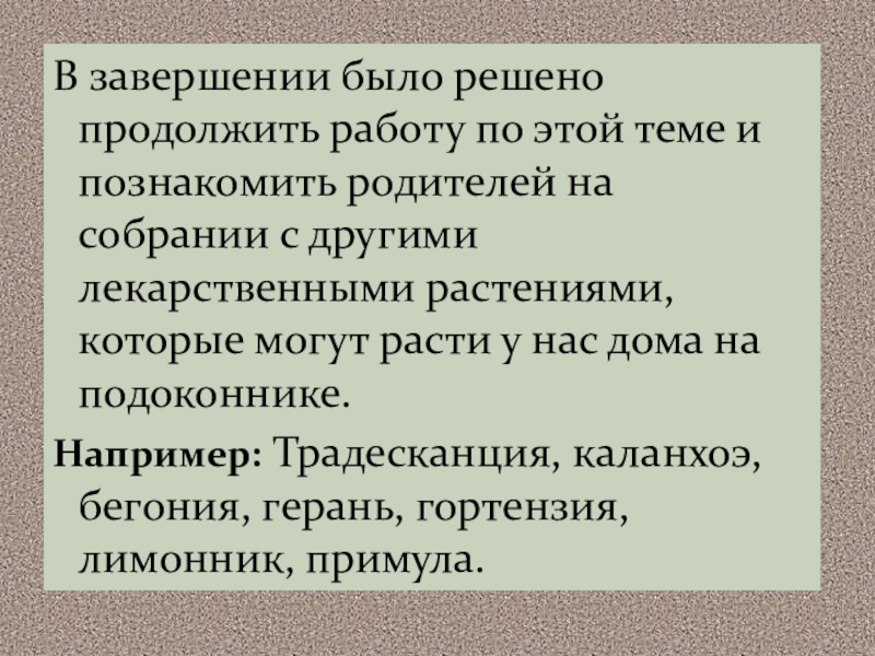 родителей на собрании с другими лекарственными растениями, которые могут расти у нас дома на подоконнике.