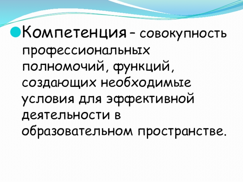 Слайд 4Компетенция – совокупность профессиональных полномочий, функций, создающих необходимые условия для эффективной