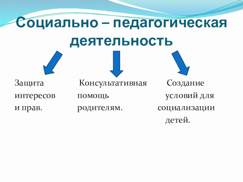 Социально – педагогическая деятельность Защита        Консультативная     Созданиеинтересов