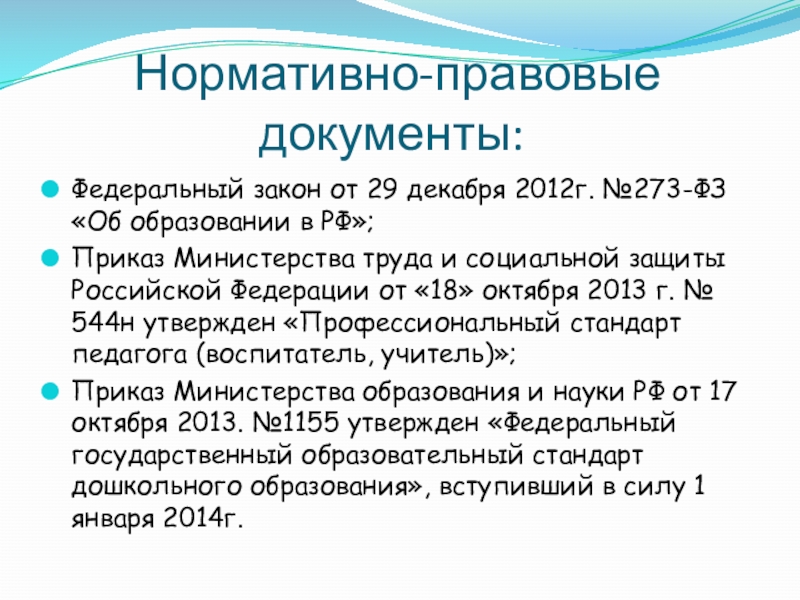 Слайд 3 Нормативно-правовые документы: