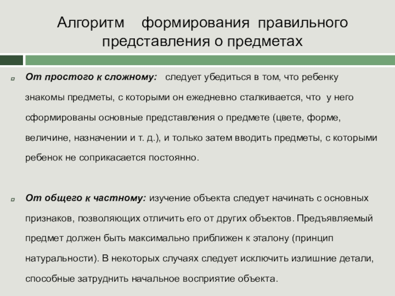 Слайд 5Алгоритм формирования правильного представления о предметах