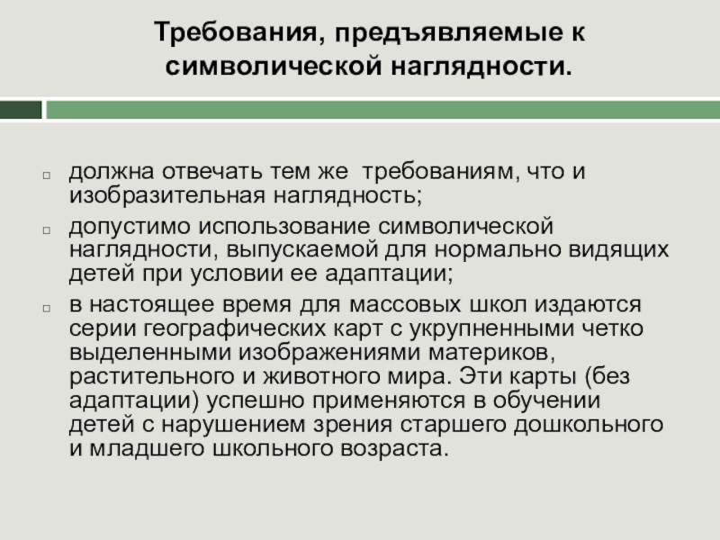 Слайд 20Требования, предъявляемые к символической наглядности.