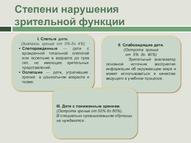 Слайд 2Степени нарушения зрительной функции