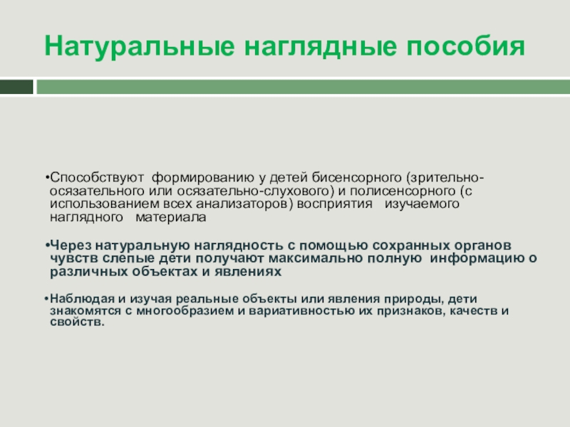 Рельефная наглядность рассчитана на восприятие детьми, имеющими