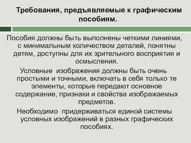 Слайд 19Требования, предъявляемые к графическим пособиям.