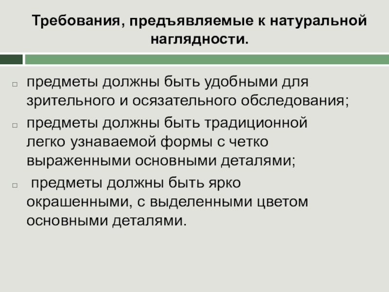 Слайд 12Требования, предъявляемые к натуральной наглядности.