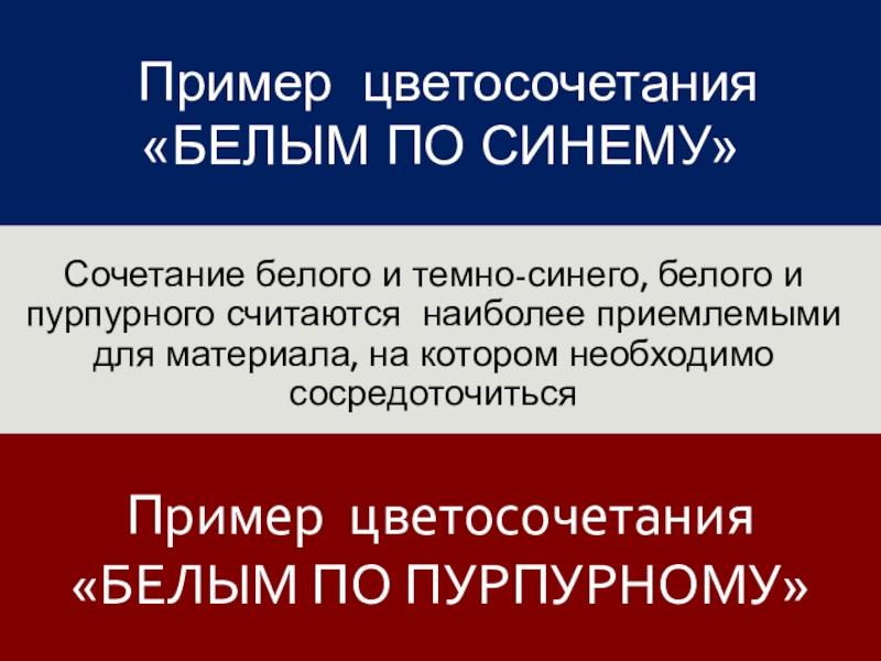 Сочетание белого и темно-синего, белого и пурпурного считаются