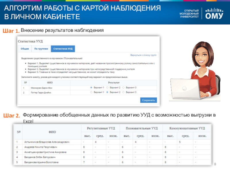 Формирование обобщенных данных по развитию УУД с возможностью выгрузки в Excel