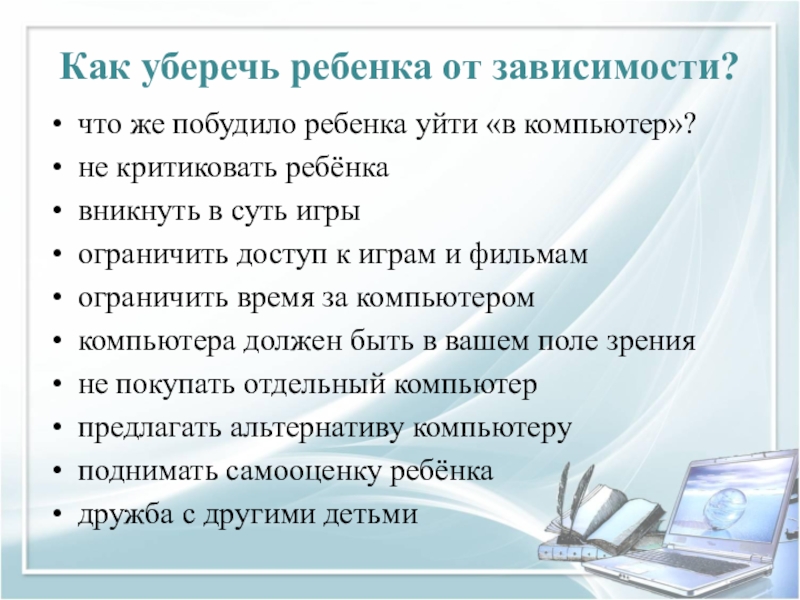 резко отнимать или запрещать компьютерные игры ребенку, который уже втянулся