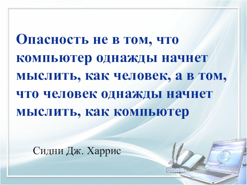 Слайд 2Опасность не в том, что компьютер однажды начнет мыслить, как человек,