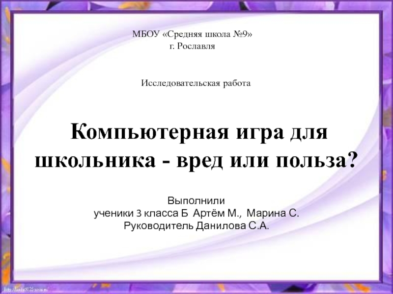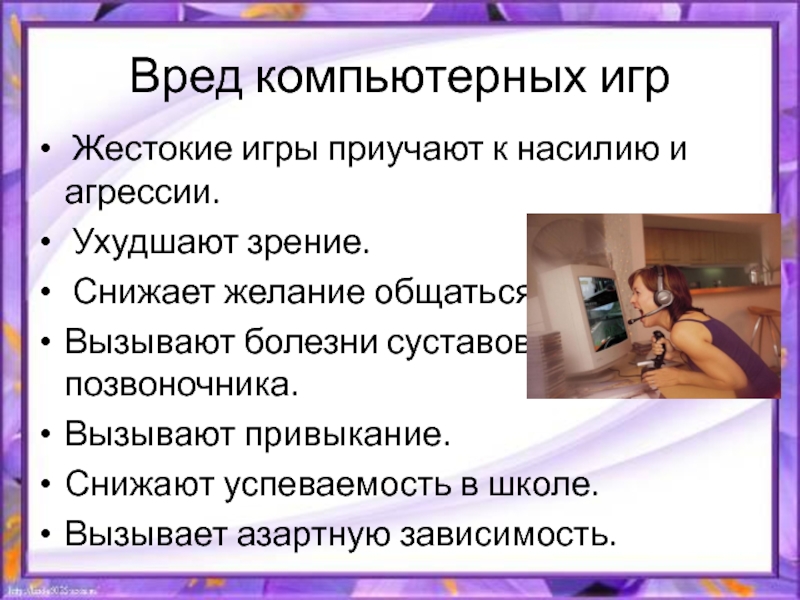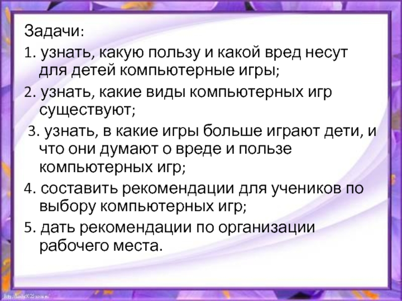 4. составить рекомендации для учеников по выбору компьютерных игр;