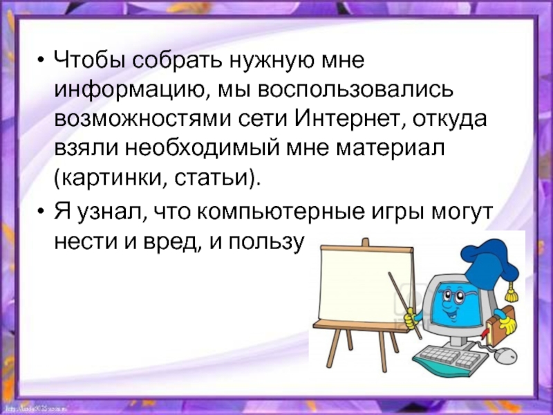 Слайд 5Чтобы собрать нужную мне информацию, мы воспользовались возможностями сети Интернет, откуда