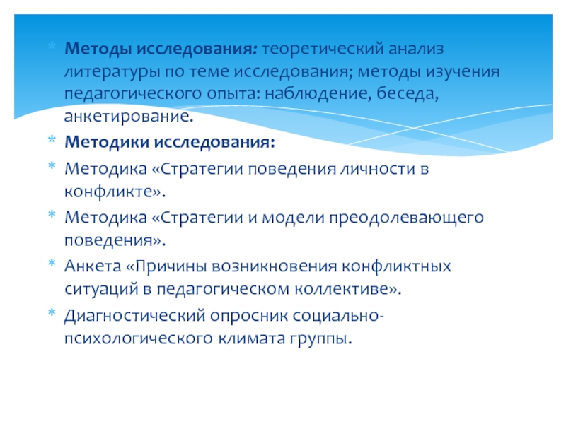 Эмпирическое исследование особенностей педагогических конфликтов и социально – психологического климата коллектива