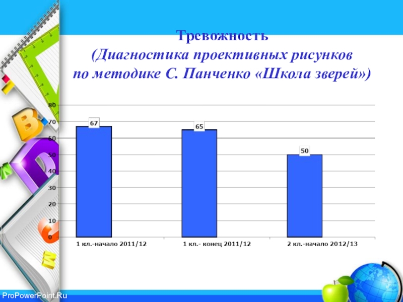 Слайд 17Тревожность (Диагностика проективных рисунков по методике С. Панченко «Школа зверей»)