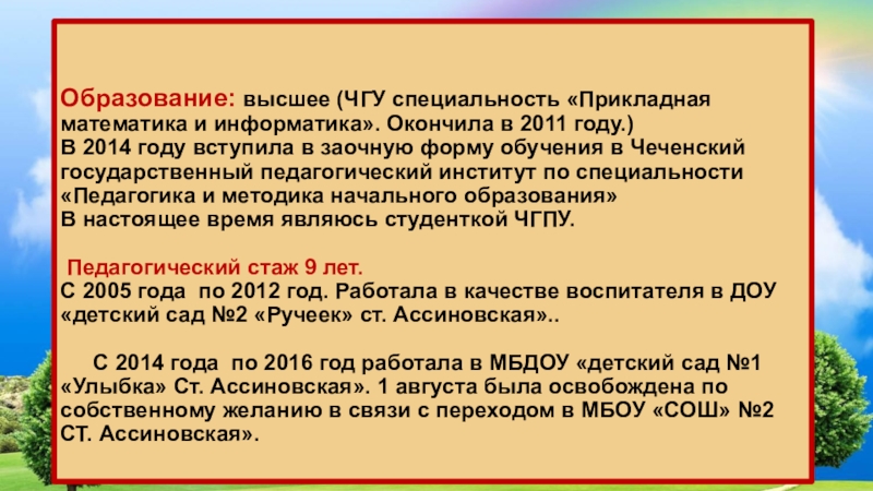 учитель начальных классов МБОУ «СОШ № 2 ст.Ассиновская»