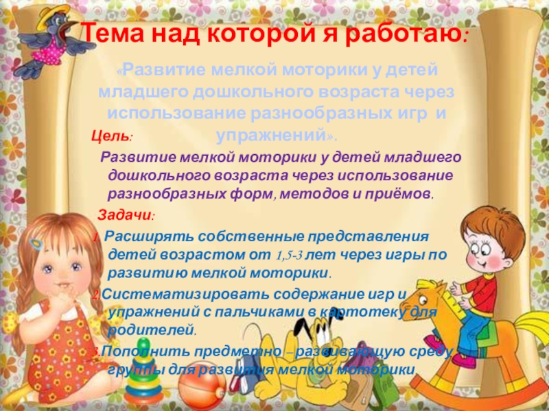 «Развитие мелкой моторики у детей младшего дошкольного возраста через использование разнообразных игр и упражнений».