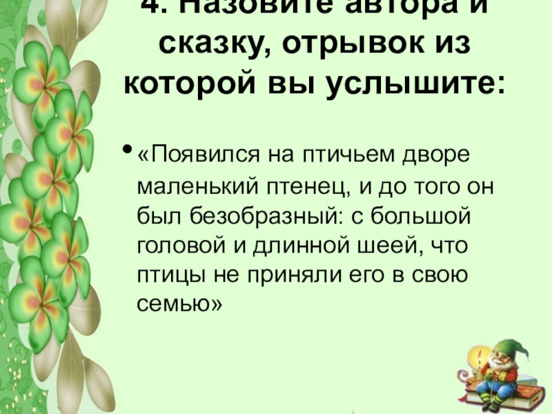 4. Назовите автора и сказку, отрывок из которой вы услышите: