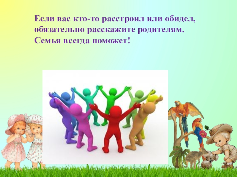 Слайд 9Если вас кто-то расстроил или обидел, обязательно расскажите родителям. Семья всегда поможет!
