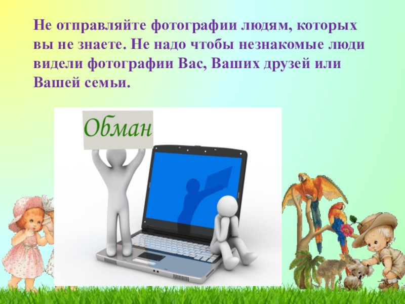 Слайд 6Не отправляйте фотографии людям, которых вы не знаете. Не надо чтобы незнакомые люди видели фотографии