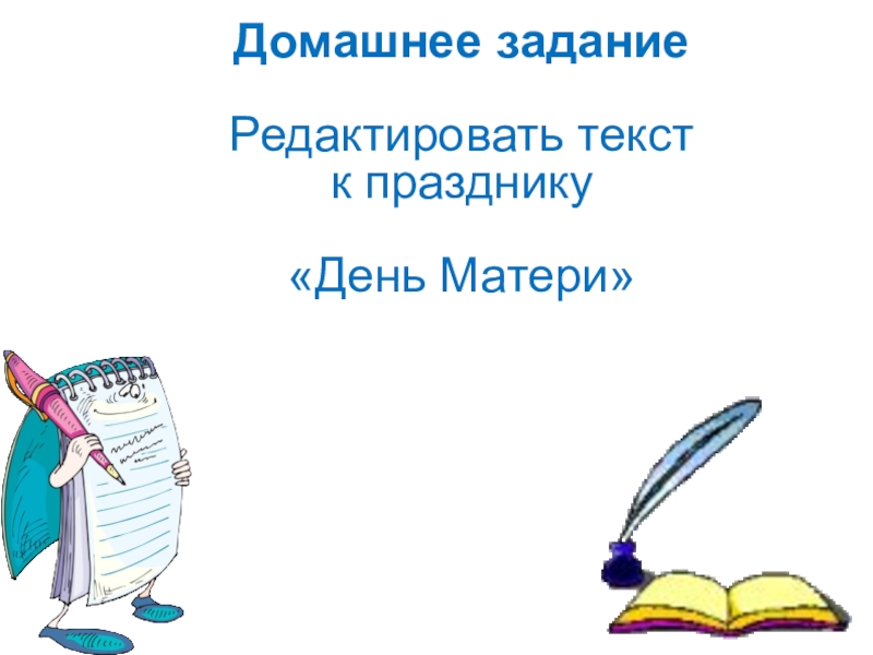 Слайд 11Домашнее задание Редактировать текст к празднику «День Матери»