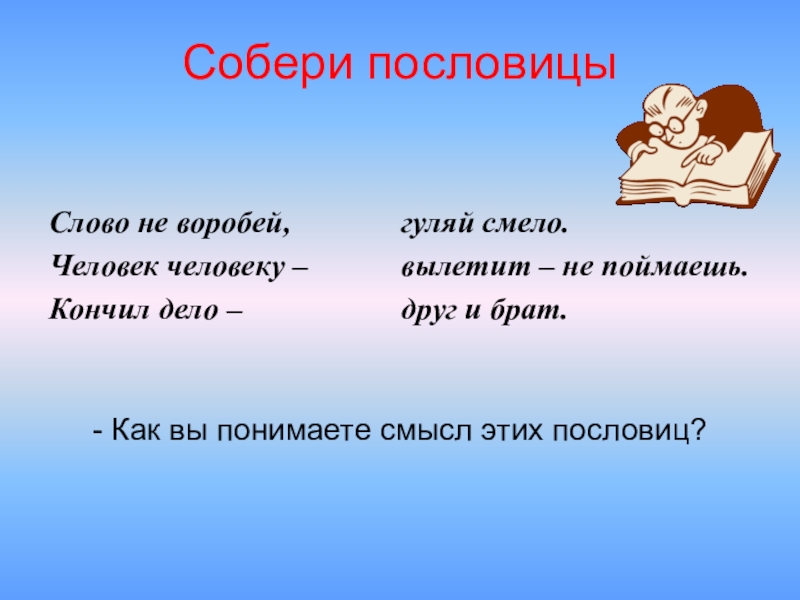 - Как вы понимаете смысл этих пословиц?