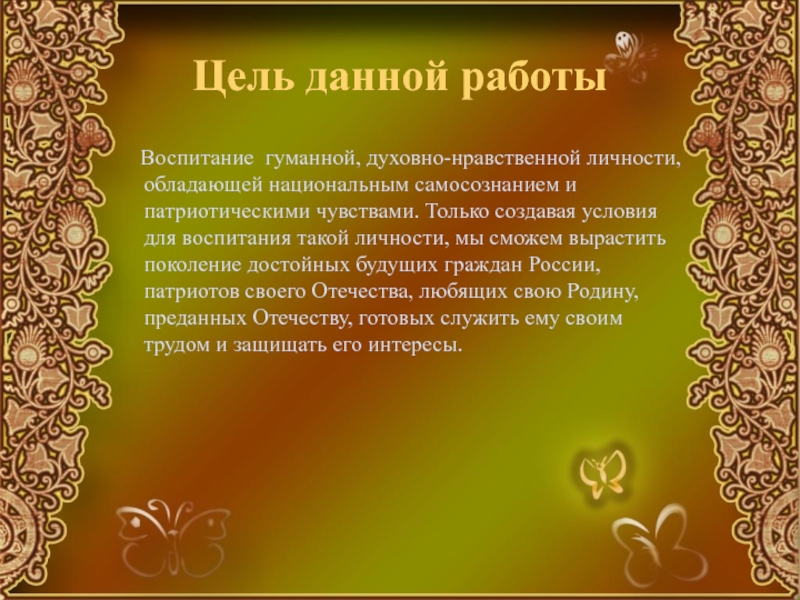 Воспитание гуманной, духовно-нравственной личности, обладающей национальным