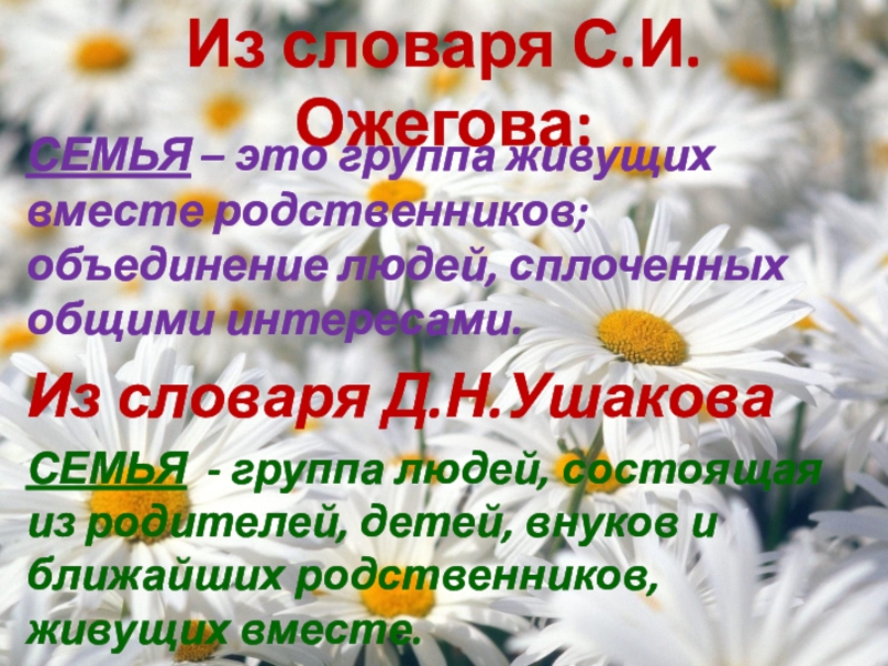 СЕМЬЯ – это группа живущих вместе родственников; объединение