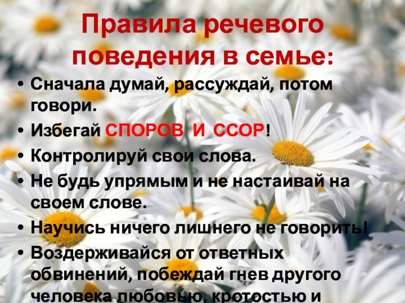 Слайд 11Правила речевого поведения в семье: