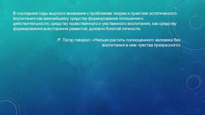 Р. Тагор говорил: «Нельзя растить полноценного человека без воспитания в нем чувства прекрасного»