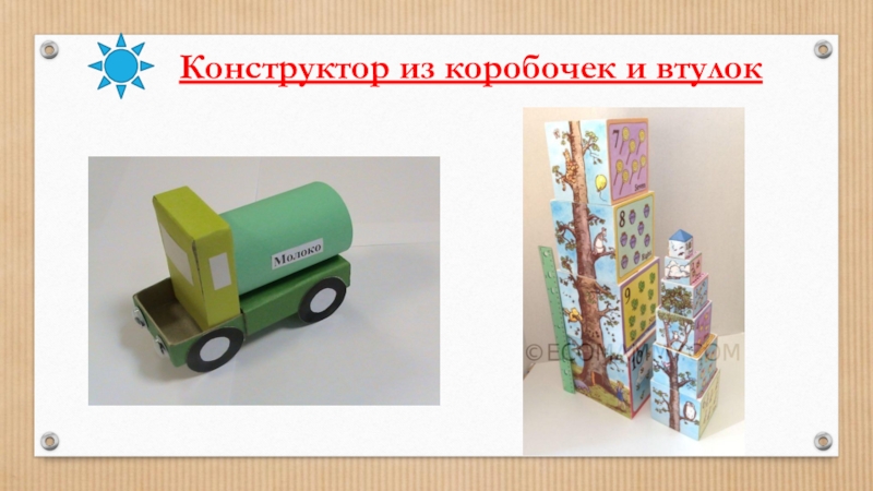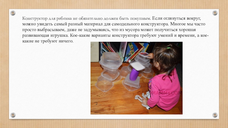 Слайд 11Конструктор для ребенка не обязательно должен быть покупным. Если оглянуться вокруг,