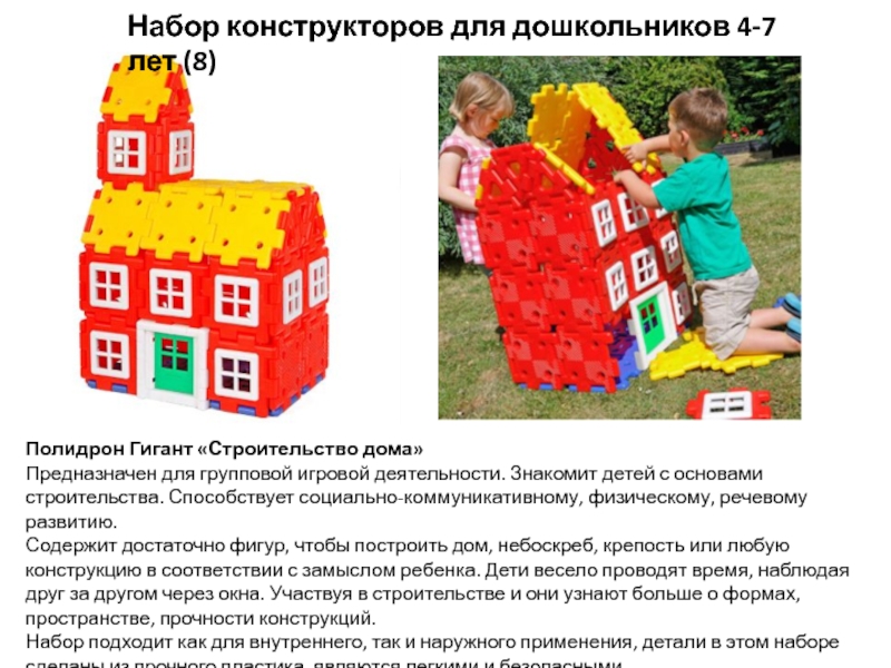 Слайд 9Набор конструкторов для дошкольников 4-7 лет (8)