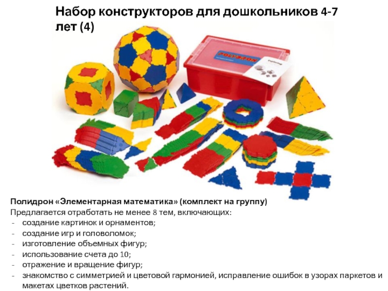 Слайд 5Набор конструкторов для дошкольников 4-7 лет (4)