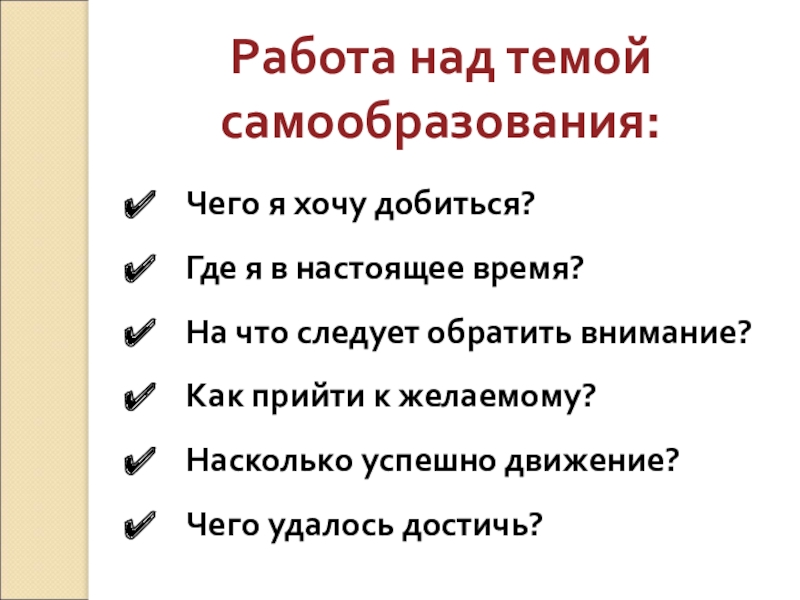 Работа над темой самообразования: