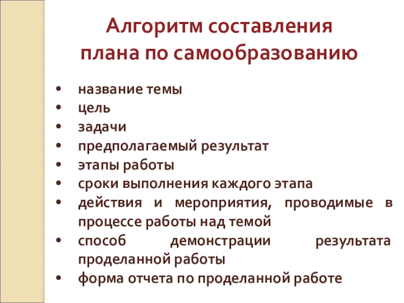 Алгоритм составления плана по самообразованию