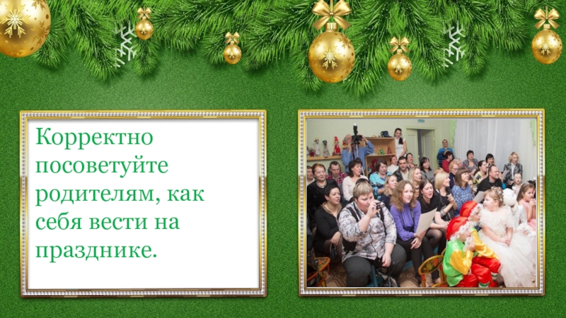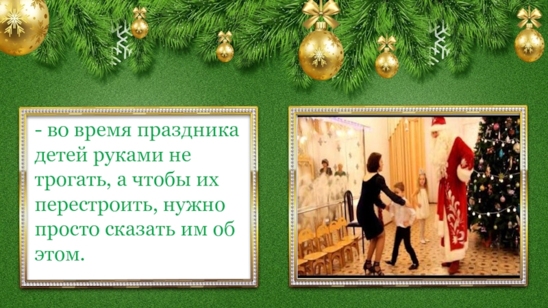 Слайд 15- во время праздника детей руками не трогать, а чтобы их