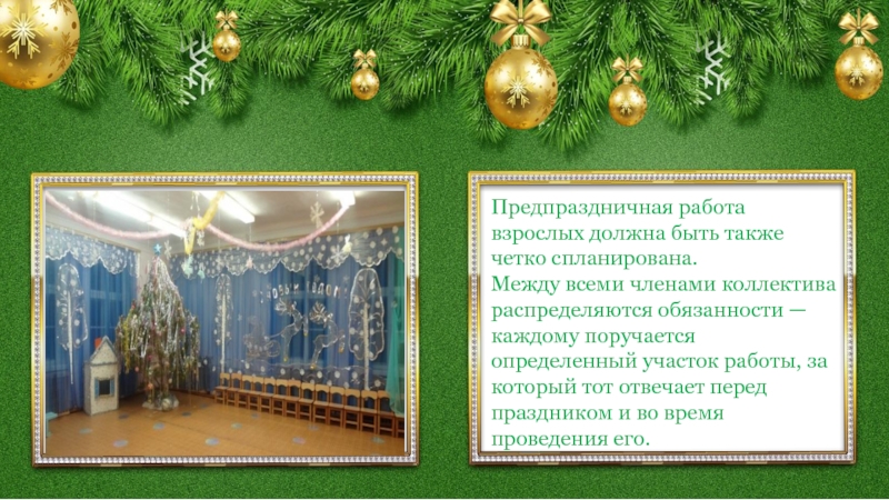 Слайд 7Предпраздничная работа взрослых должна быть также четко спланирована.