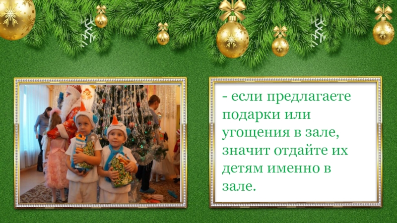Слайд 21- если предлагаете подарки или угощения в зале, значит отдайте их