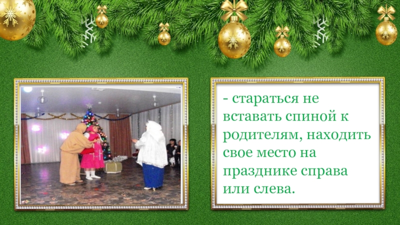 Слайд 14- стараться не вставать спиной к родителям, находить свое место на