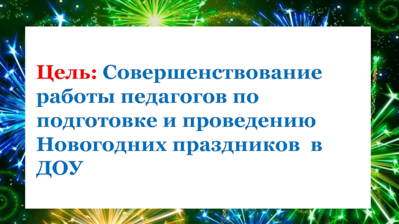 Цель: Совершенствование работы педагогов по подготовке и проведению Новогодних праздников в