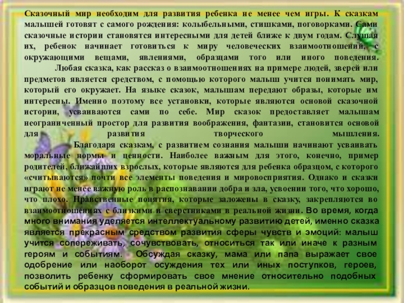 Слайд 2Сказочный мир необходим для развития ребенка не менее чем игры. К