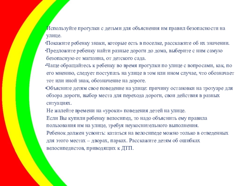 Слайд 4Используйте прогулки с детьми для объяснения им правил безопасности на улице.