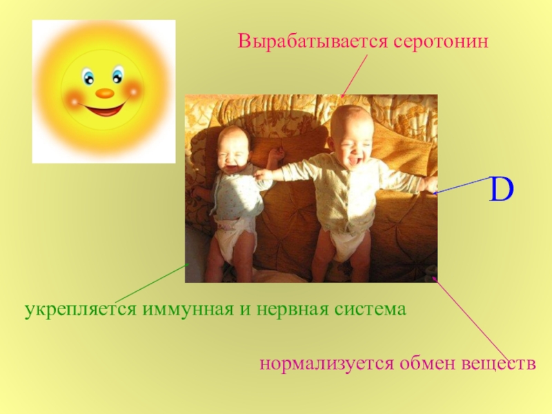 Dукрепляется иммунная и нервная система нормализуется обмен веществ Вырабатывается серотонин