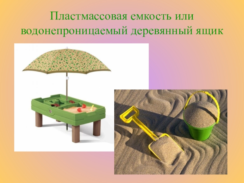 Слайд 19Пластмассовая емкость или водонепроницаемый деревянный ящик