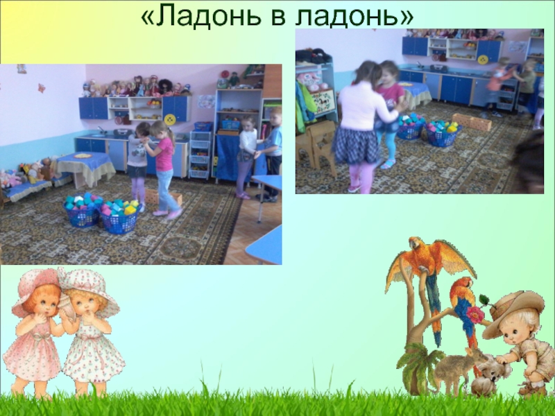 Дети становятся попарно, прижимая правую ладонь к левой ладони и левую ладонь к правой ладони друга. Соединенные таким образом, они должны передвигаться по комнате, обходя различные препятствия: стол, стулья, кровать…