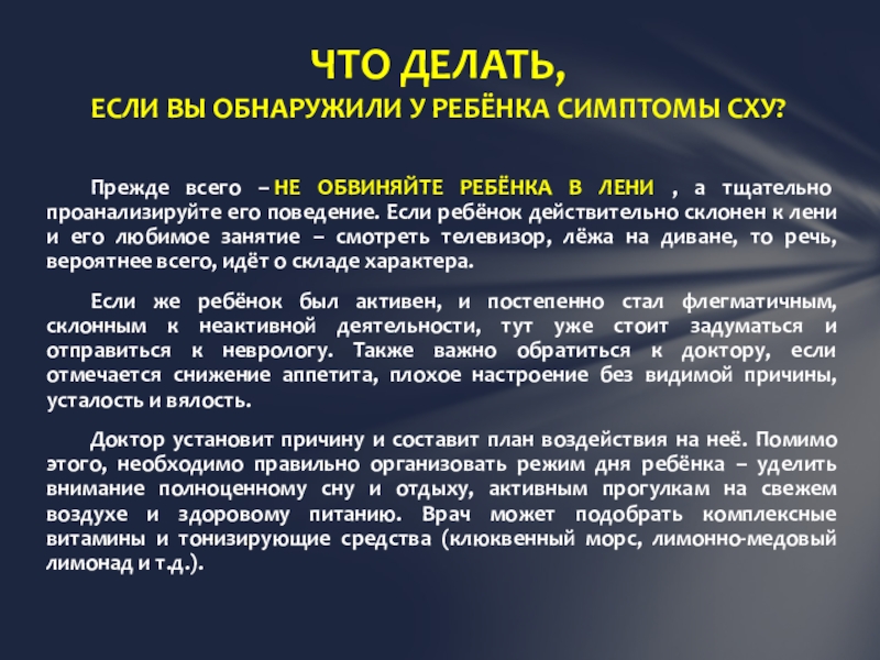 ЕСЛИ ВЫ ОБНАРУЖИЛИ У РЕБЁНКА СИМПТОМЫ СХУ?