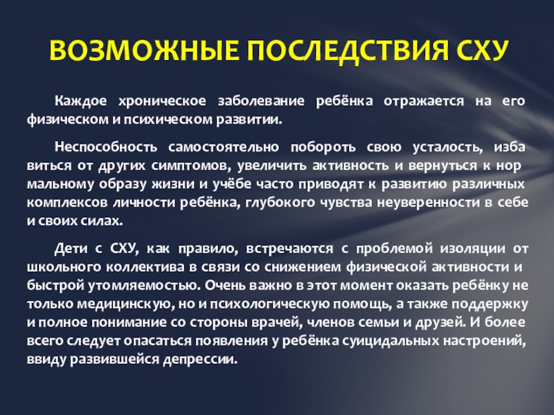 ВОЗМОЖНЫЕ ПОСЛЕДСТВИЯ СХУ