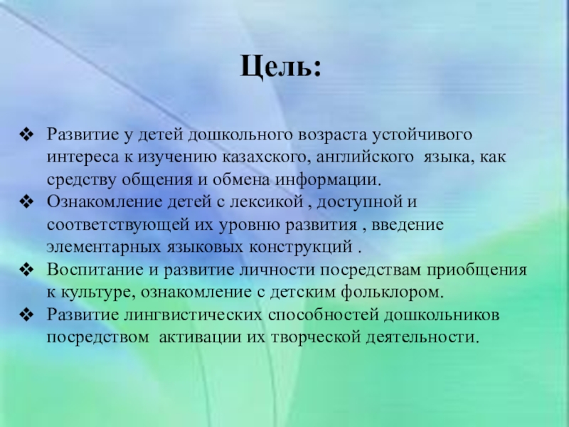 = создавать мотивацию к изучению государственного и английского языка средствами музыки, стихотворений, пословиц;